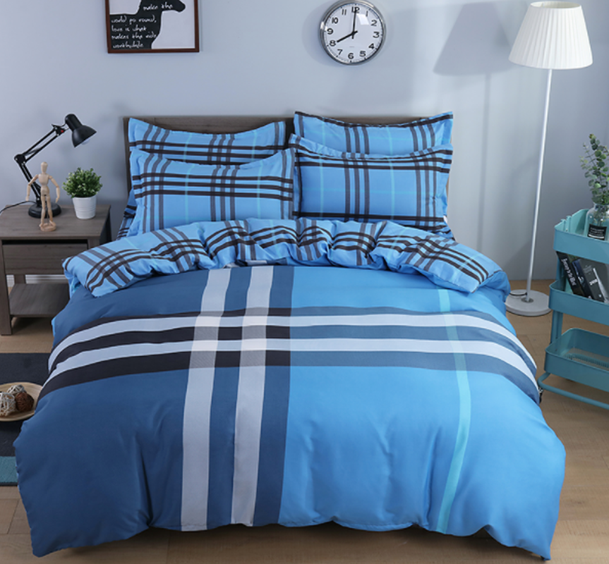 Blue Plaid Stripe Pattern Printing Bedding Fourpiece Set