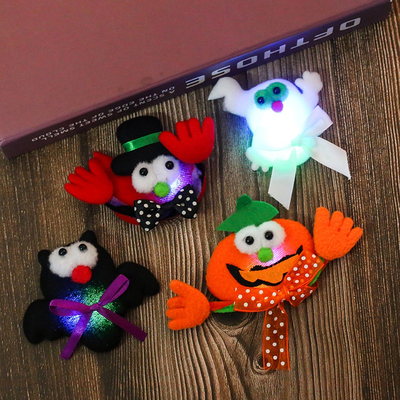 Halloween Illuminated Pumpkin Bat Brooch