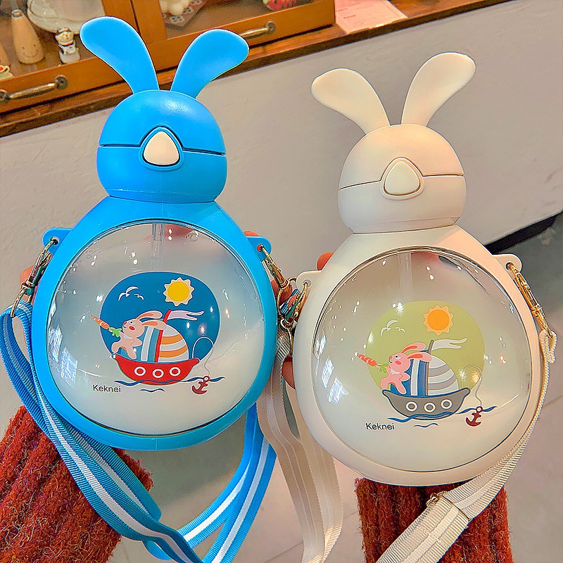 Childrens Straw Cup Summer Diagonal Strap Campus Cute Rabbit Drinking Cup Adult Water Bottle