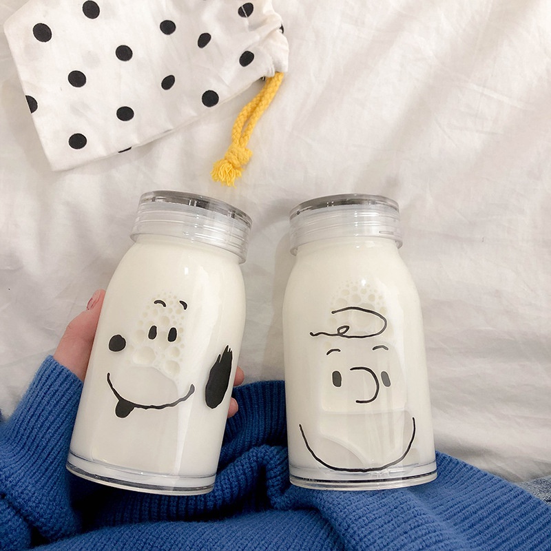Simple Casual Cartoon Printing Milk Cup Creative Student Transparent Glass Cup Portable Largecapacity Handy Cup