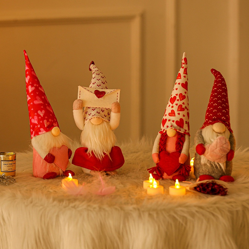 Fashion Faceless Dwarf Rudolph Heart Pattern Doll Decoration