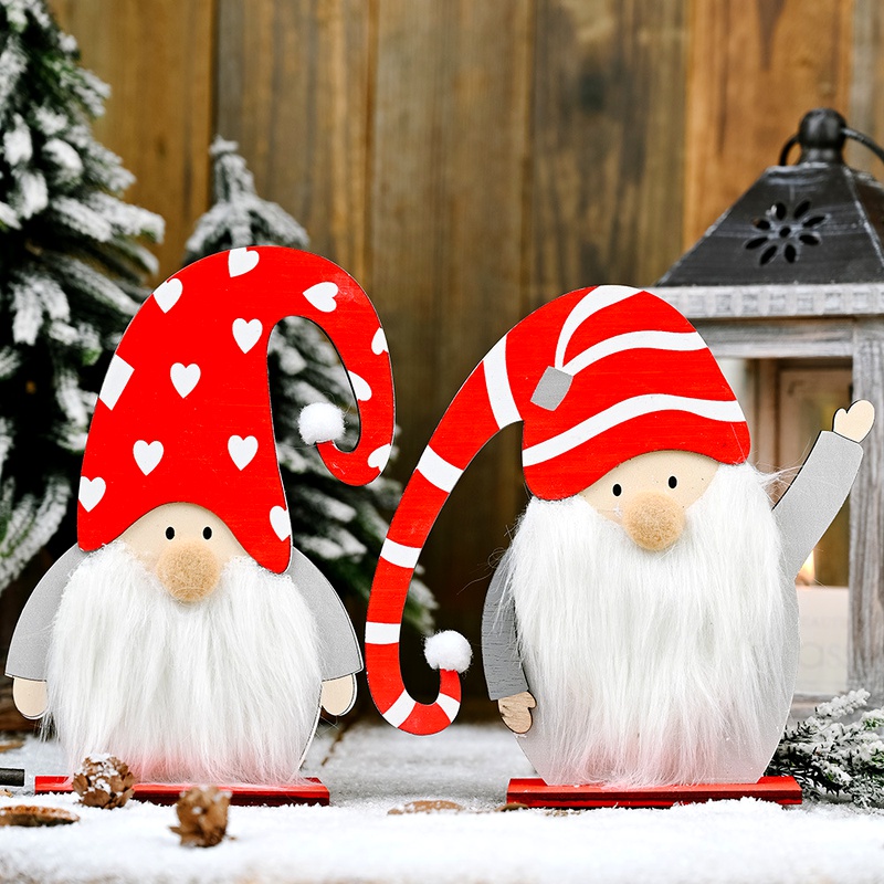 Christmas Wooden Long Curved Hat Old Man Ornaments
