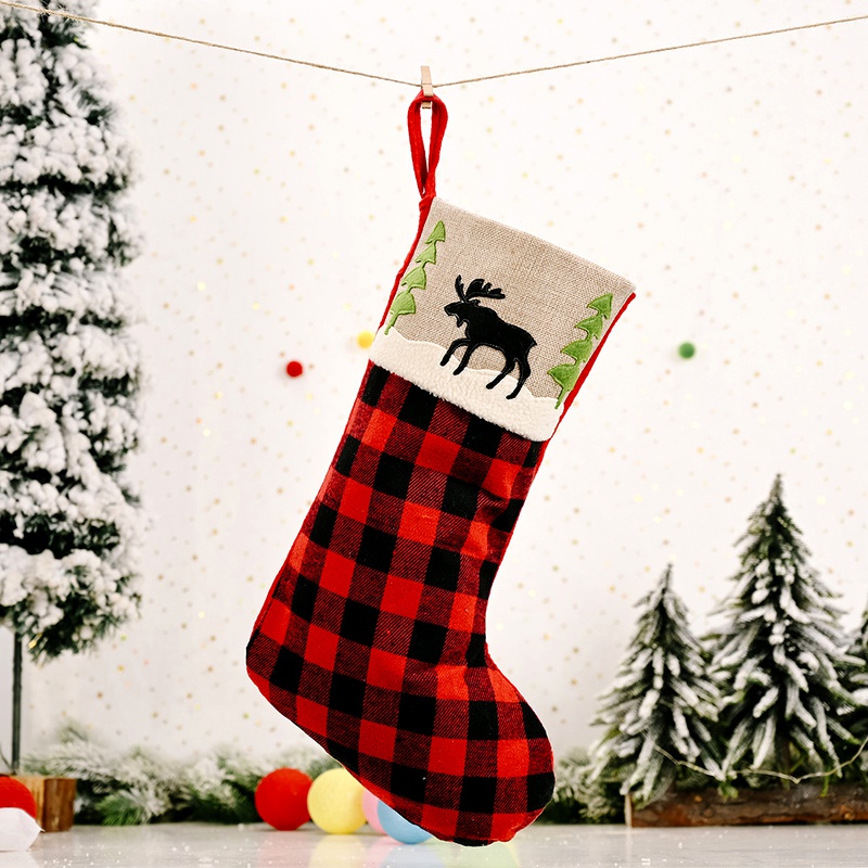 Christmas Decoration Red And Black Plaid Elk Stocking