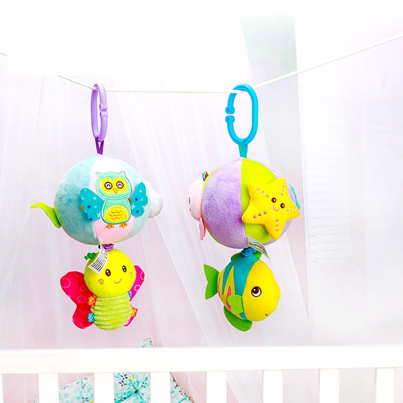 Creative Threedimensional Animal Baby Music Pull Bell Cloth Ball Bed Hanging Plush Bed Bell