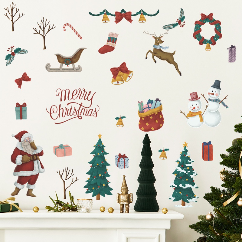 Santa Claus Snowman Christmas Tree Decoration Wall Sticker