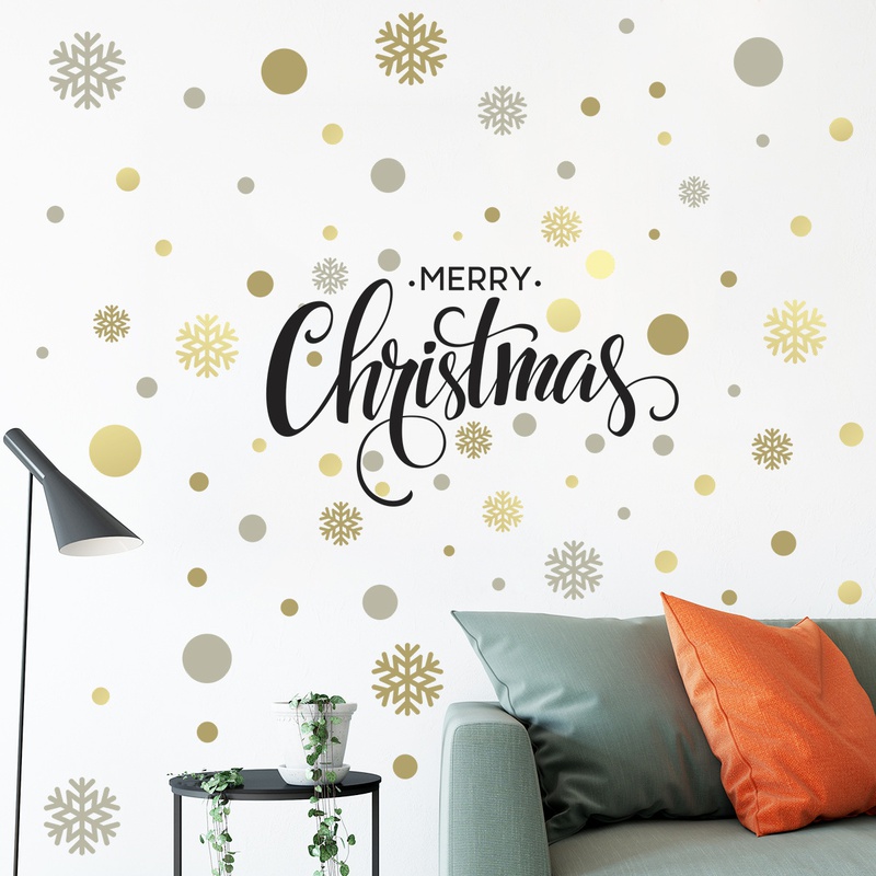 New Merry Christmas Snowflake Gold Silver Decoration Wall Sticker